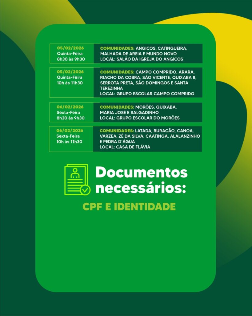 📅 Confira abaixo as comunidades atendidas, bem como datas e horários da entrega: