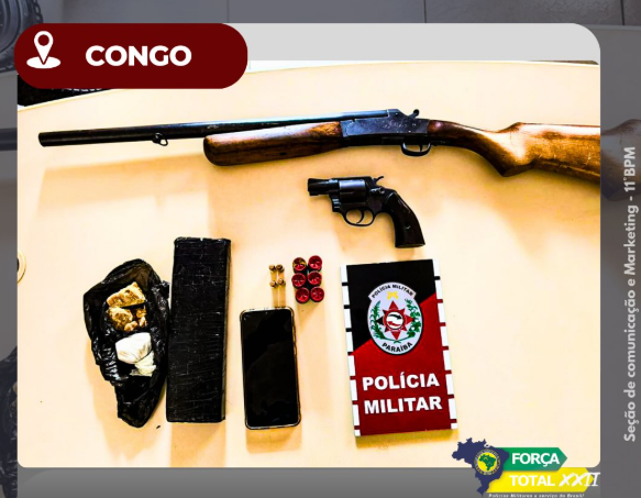 Operação Força Total: Polícia Militar apreende arma de fogo e entorpecentes com adolescente, no Congo