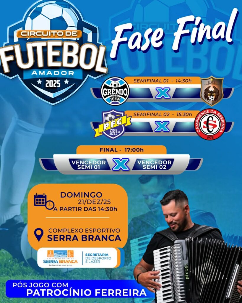Fase final do Circuito de Futebol Amador de Serra Branca acontece neste domingo e jogos serão realizados no Complexo Esportivo